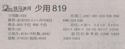 【铁码冰河】第1685期预测信息<特区报>