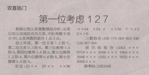 【双喜临门】第1686期预测信息<特区报>