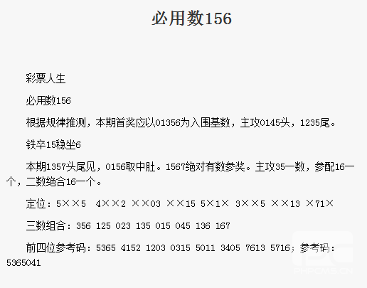【彩票人生】第1686期预测信息<特区报>