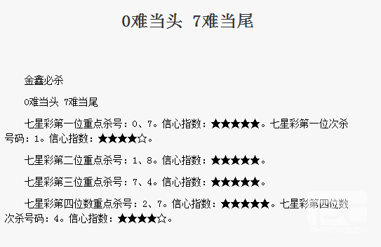 【金鑫必杀】第1686期预测信息<特区报>