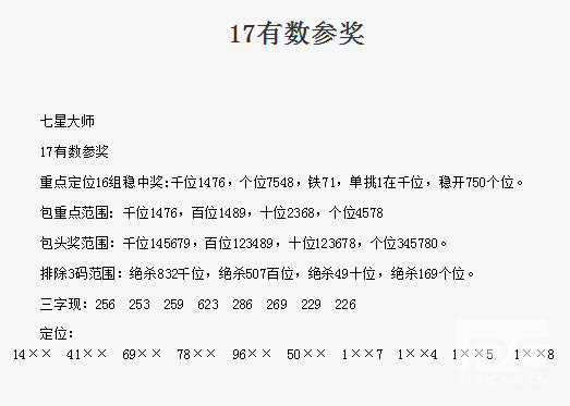 【七星大师】第1686期预测信息<特区报>