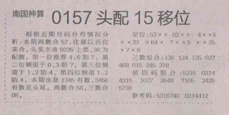 【南国神算】第1687期预测信息<特区报>