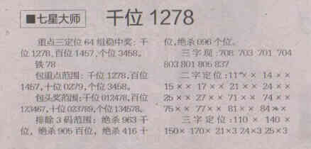 【七星大师】第1688期预测信息<特区报>
