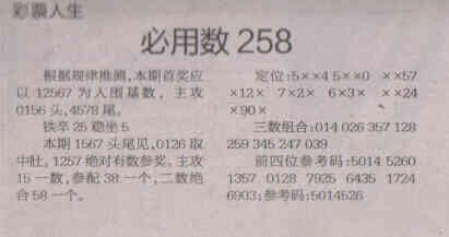 【彩票人生】第1689期预测信息<特区报>