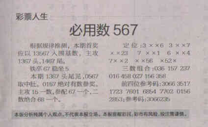 【彩票人生】第1690期预测信息<特区报>
