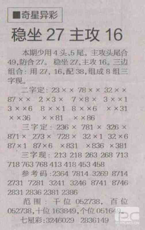 【奇星异彩】第1694期预测信息<特区报>