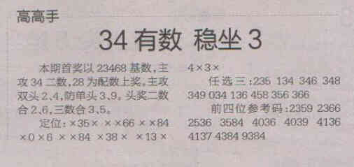 【高高手】第1695期预测信息<特区报>