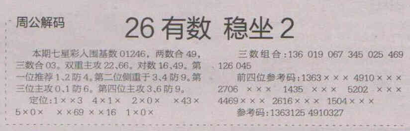 【周公解码】第1696期预测信息<特区报>