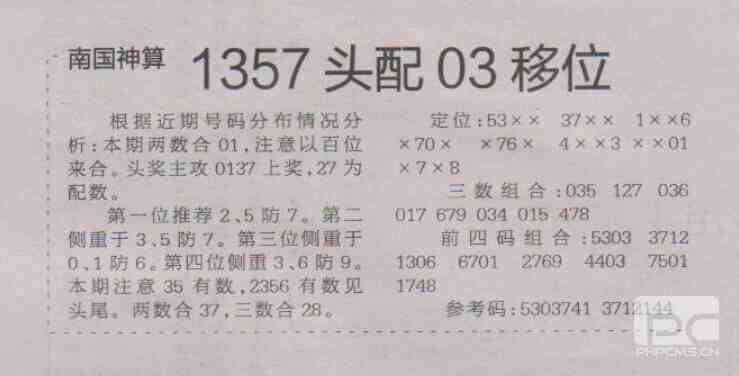 【南国神算】第1696期预测信息<特区报>