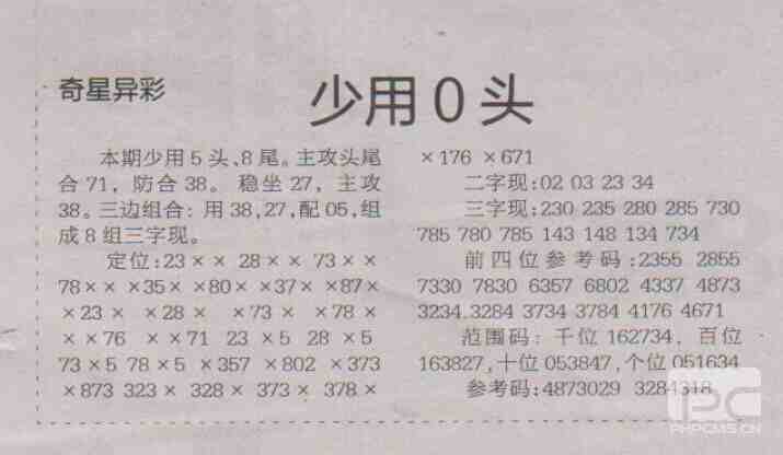 【奇星异彩】第1696期预测信息<特区报>