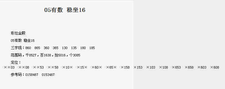 【彩坛金殿】第1698期预测信息<特区报>