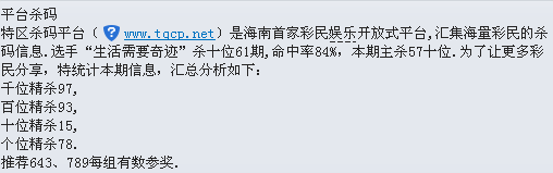 【平台杀码】第1699期预测信息<特区报>
