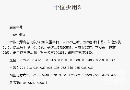 【金色年华】第1701期预测信息<特区报>