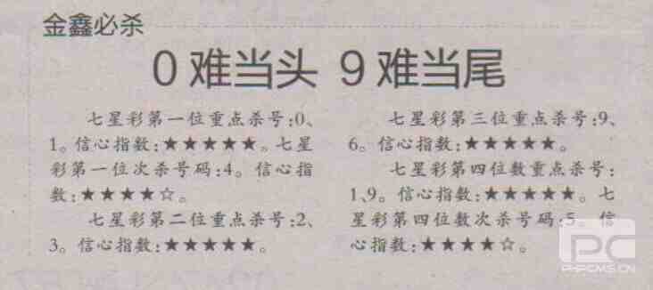 【金鑫必杀】第1704期预测信息<特区报>