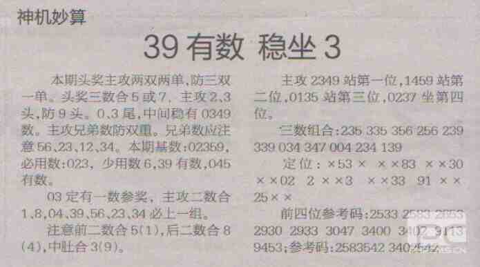 【神机妙算】第1704期预测信息<特区报>