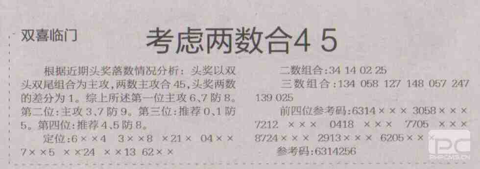 【双喜临门】第1705期预测信息<特区报>