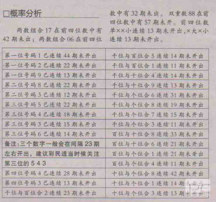 【概率分析】第1705期预测信息<特区报>