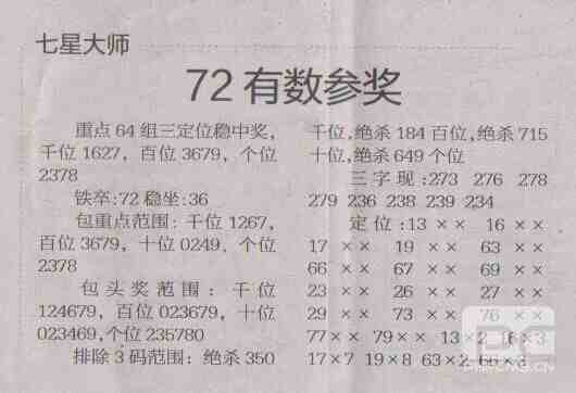 【七星大师】第1705期预测信息<特区报>