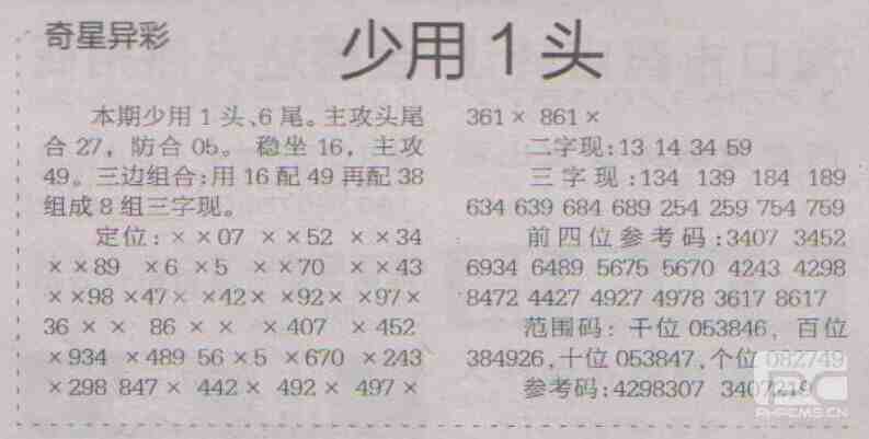 【奇星异彩】第1705期预测信息<特区报>