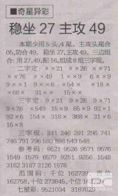【奇星异彩】第1706期预测信息<特区报>