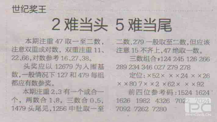 【世纪奖王】第1707期预测信息<特区报>