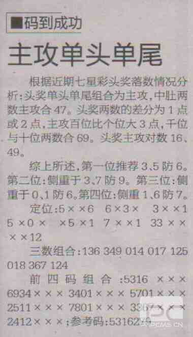 【码到成功】第1708期预测信息<特区报>