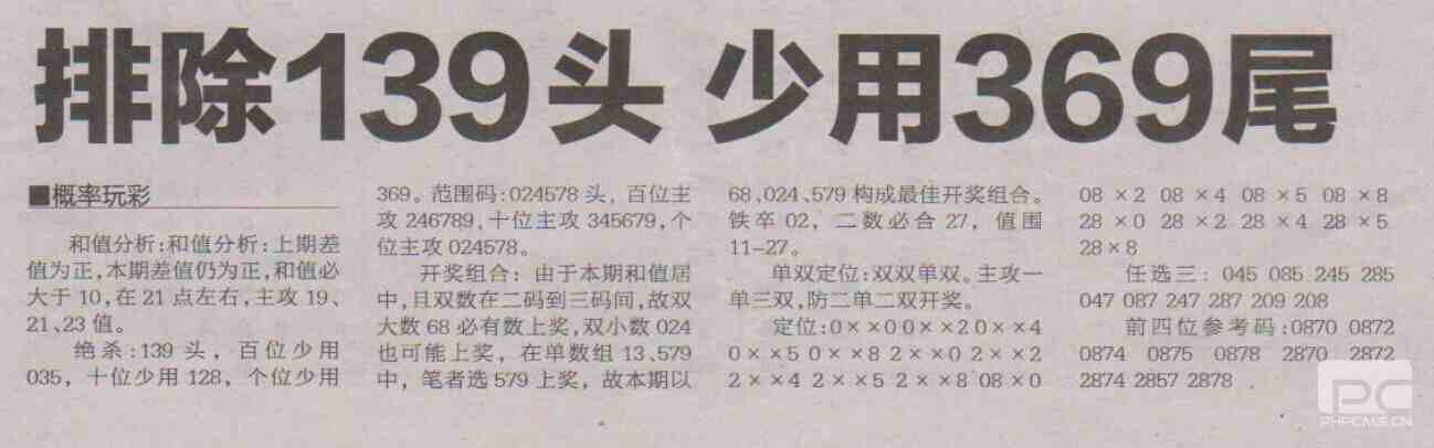 【概率玩彩】第1708期预测信息<特区报>