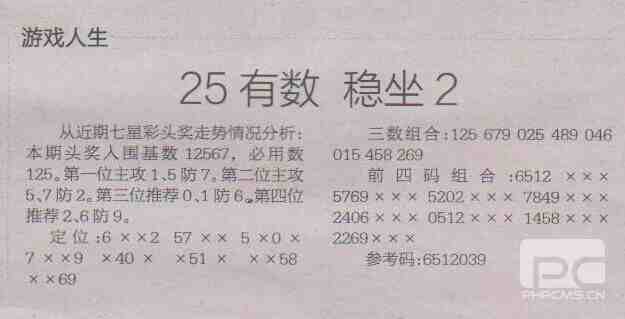 【游戏人生】第1710期预测信息<特区报>