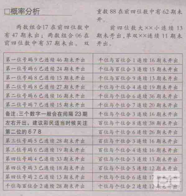 【概率分析】第1710期预测信息<特区报>