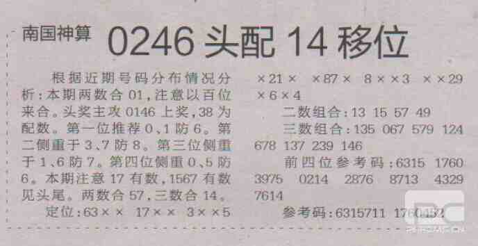 【南国神算】第1711期预测信息<特区报>