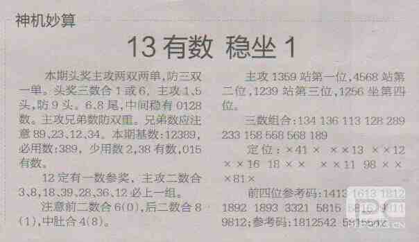 【神机妙算】第1713期预测信息<特区报>