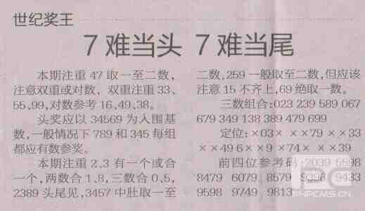 【世纪奖王】第1713期预测信息<特区报>