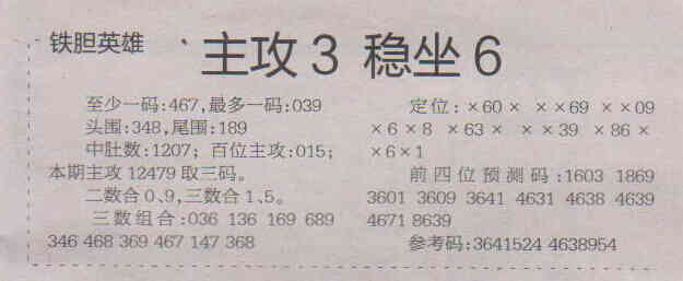 【铁胆英雄】第1714期预测信息<特区报>