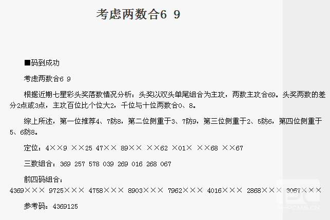 【码到成功】第1715期预测信息<特区报>