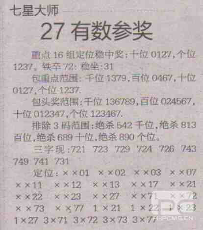【七星大师】第1719期预测信息<特区报>
