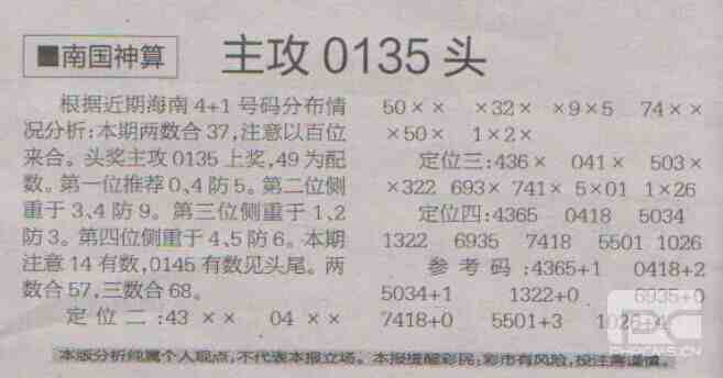 【南国神算】第1721期预测信息<特区报>