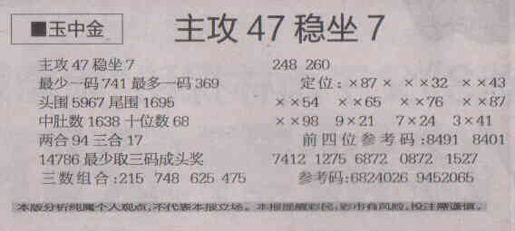 【玉中金】第1721期预测信息<特区报>