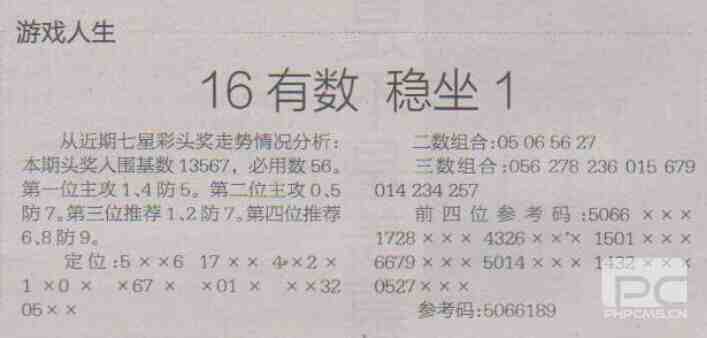【游戏人生】第1722期预测信息<特区报>