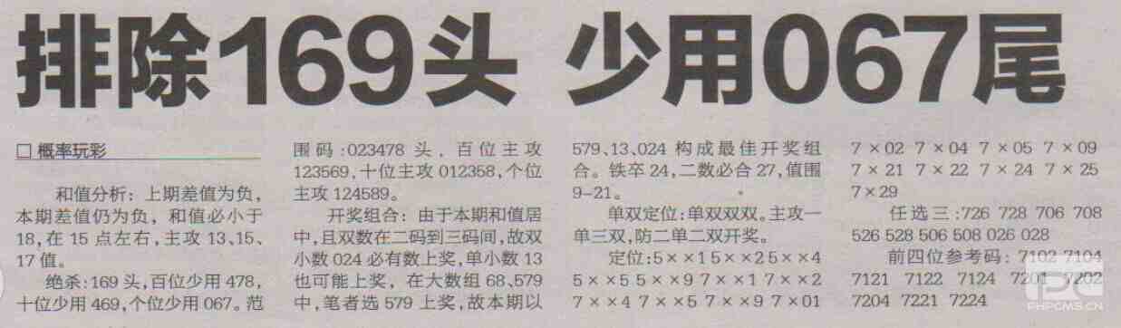 【概率玩彩】第1722期预测信息<特区报>