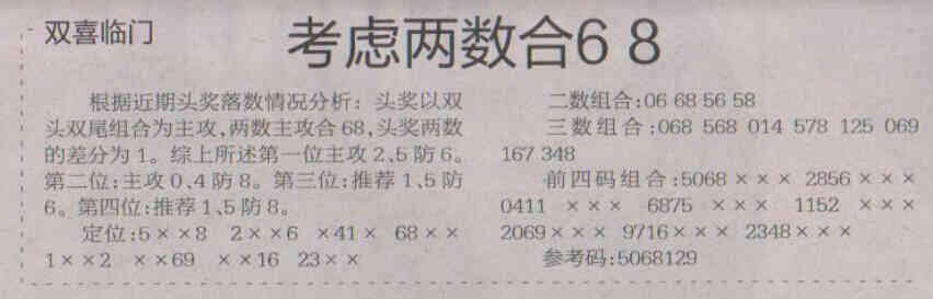 【双喜临门】第1723期预测信息<特区报>