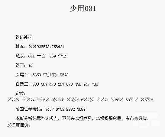 【铁码冰河】第1723期预测信息<特区报>