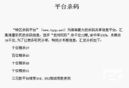【平台杀码】第1723期预测信息<特区报>