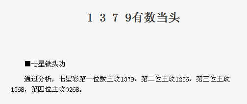 【七星铁头功】第1723期预测信息<特区报>