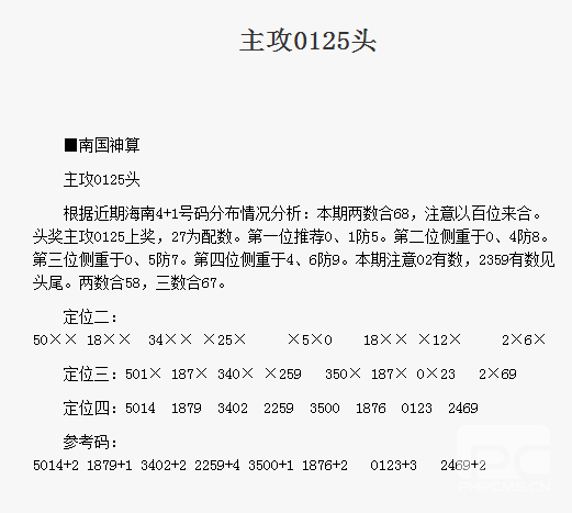 【南国神算】第1724期预测信息<特区报>