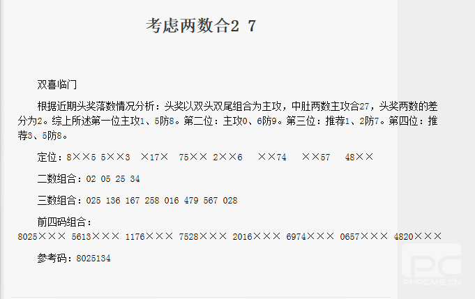 【双喜临门】第1726期预测信息<特区报>
