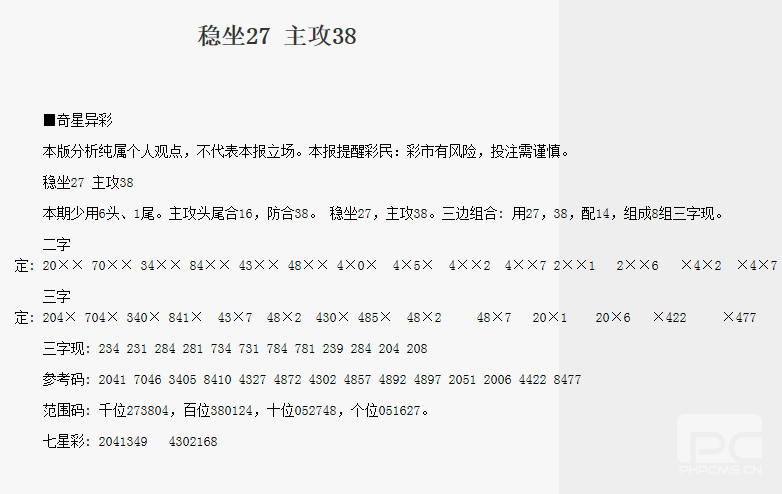 【奇星异彩】第1727期预测信息<特区报>
