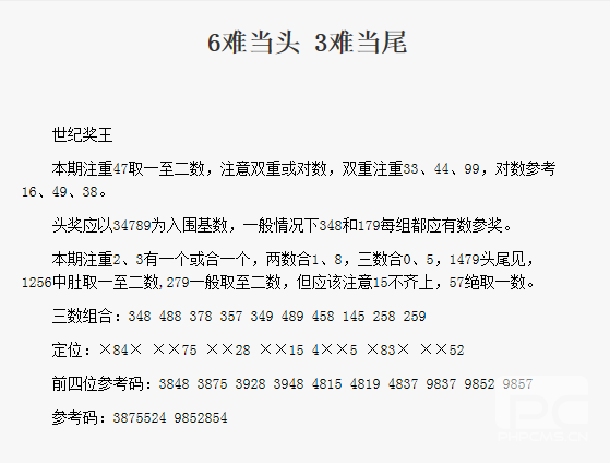 【世纪奖王】第1728期预测信息<特区报>