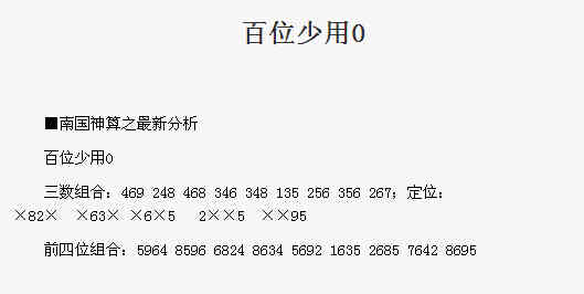 【南国神算】第1730期预测信息<特区报>