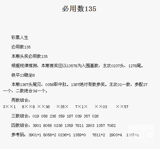 【彩票人生】第1731期预测信息<特区报>