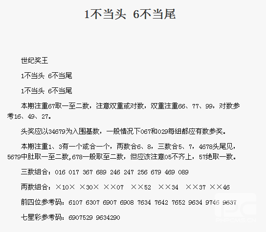 【世纪奖王】第1731期预测信息<特区报>